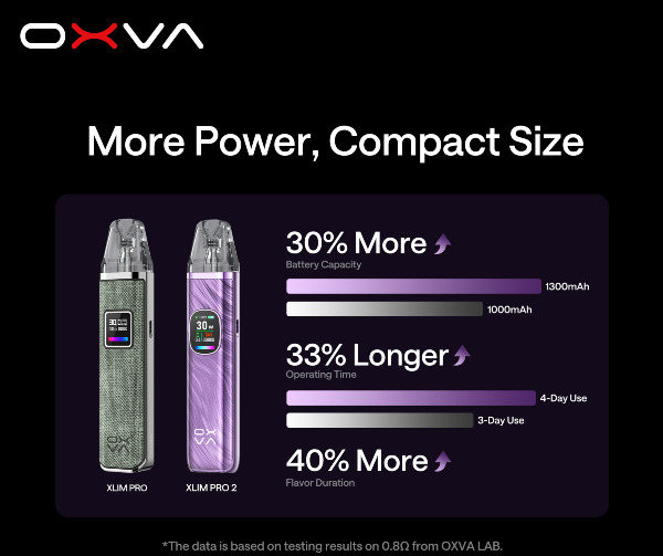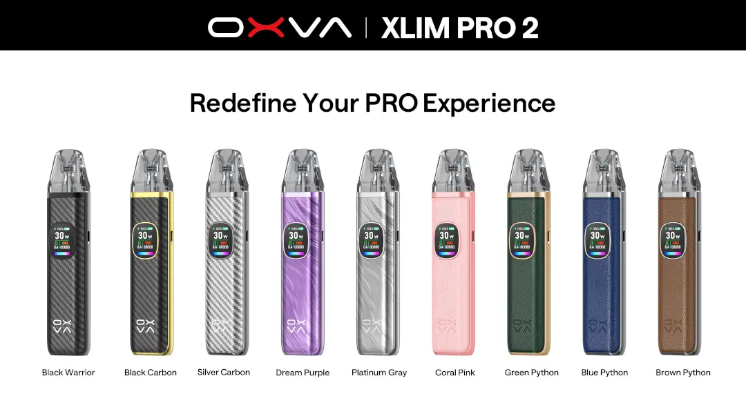 Oxva Xlim Pro 2 Pod Kit. Oxva presenta la version mejorada del Xlim Pro. Xlim Pro 2 es un dispositivo avanzado de vapeo diseñado para redefinir tu experiencia. Con una batería de 1300mAh y carga rápida de 2A, este dispositivo ofrece más potencia y velocidad de carga lo que hace que no sea necesario cargarlo durante 4 días.. Su pantalla en color Ultra-HD de 0.56 pulgadas proporciona una visualización clara y vibrante.
